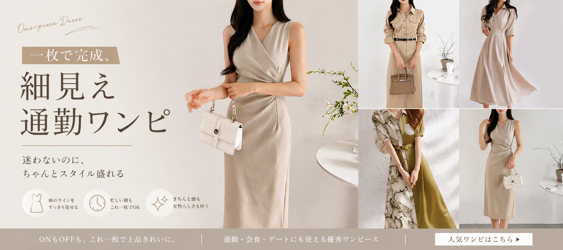 【着痩せ/通勤】カシュクールハイウエストワンピース [ミレジェネ]